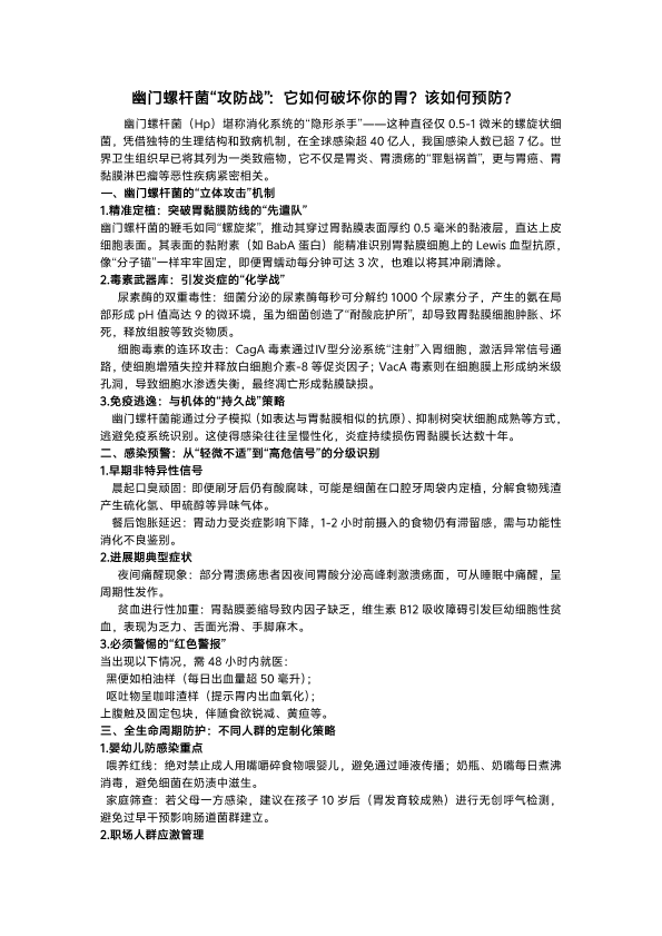 幽门螺杆菌“攻防战” :它如何破坏你的胃?该 如何预