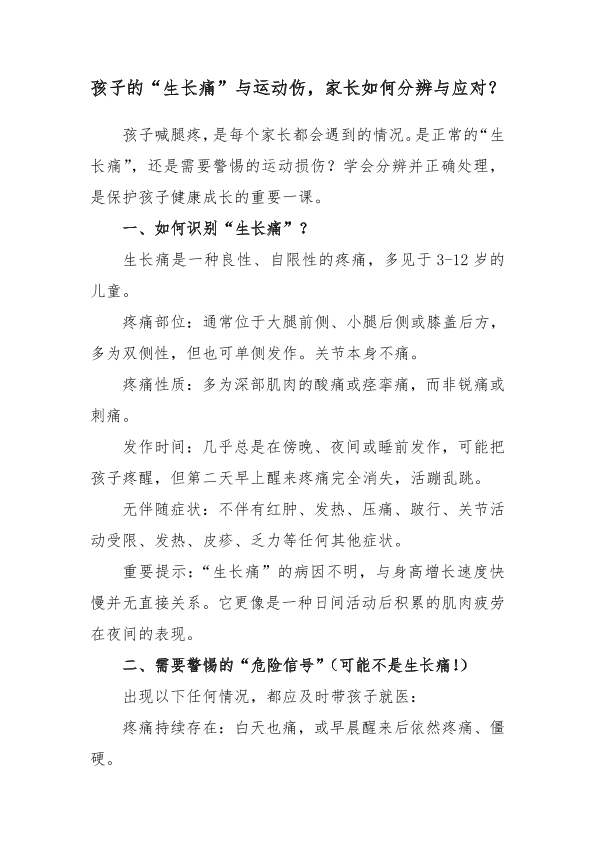 孩子的“生长痛”与运动伤,家长如何分辨与应对?