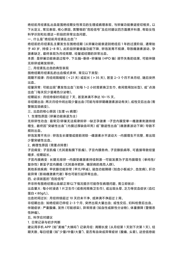 绝经前月经紊乱出血科普