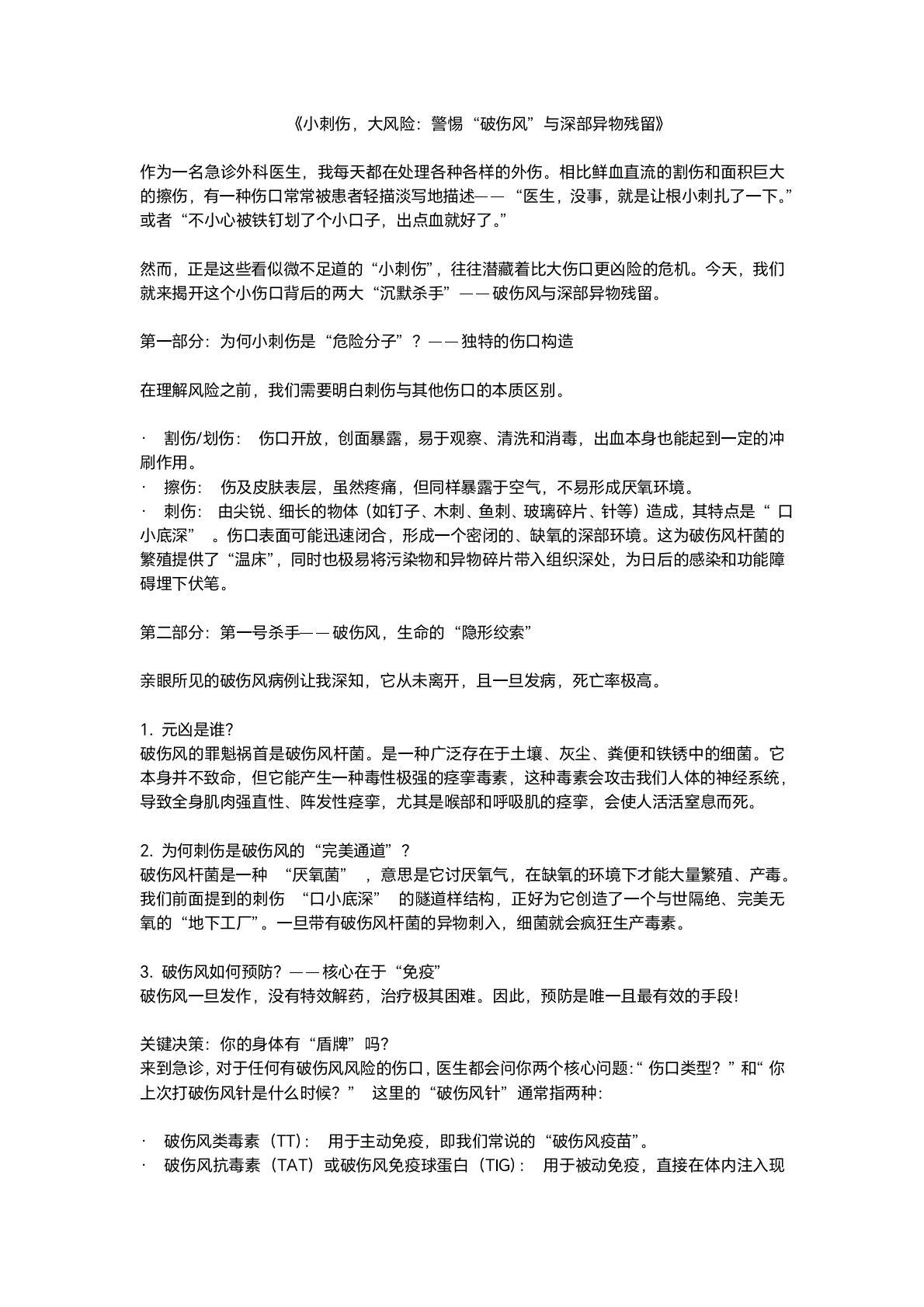 《小刺伤,大风险:警惕“破伤风”与深部异物残留》