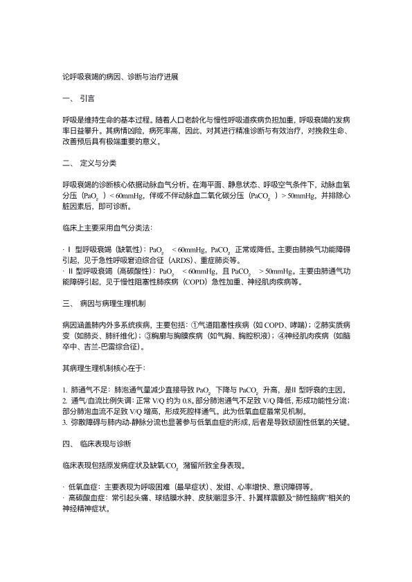 论呼吸衰竭的病因、诊断与治疗进展