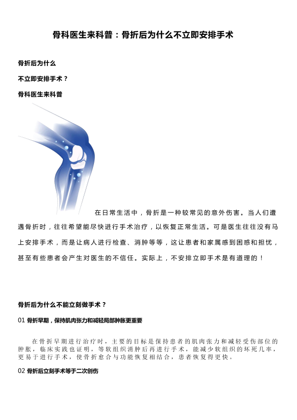 骨折后为什么不能立即手术