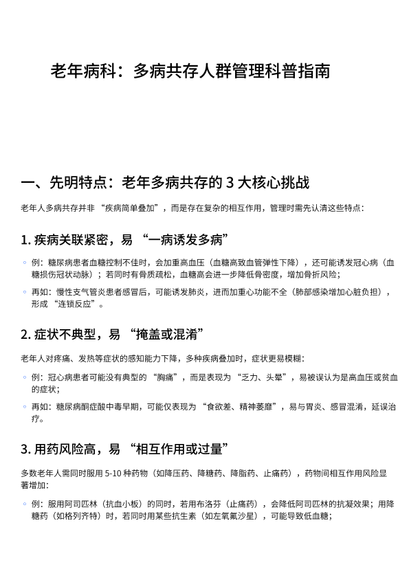 老年病科:多病共存人群管理科普指南