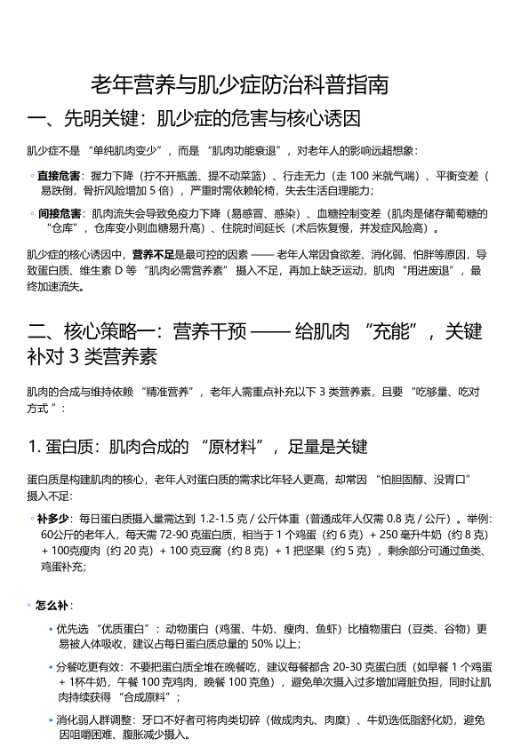 老年营养与肌少症防治科普指南
