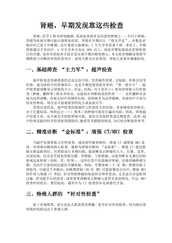 肾癌,早期发现靠这些检查