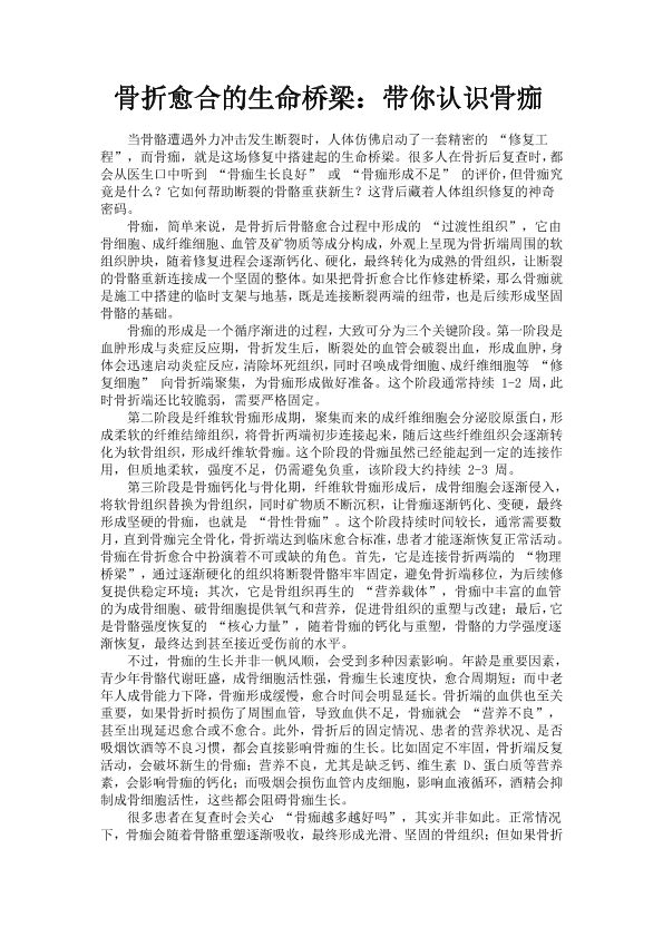 骨折愈合的生命桥梁,带你认识骨痂