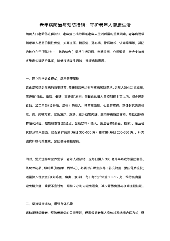 老年病防治与预防措施:守护老年人健康生活