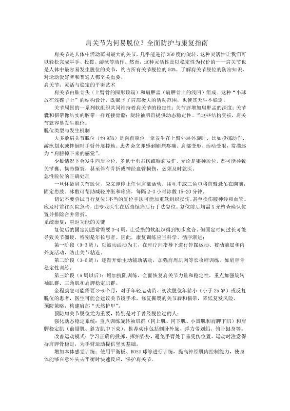 文字类作品+肩关节为何易脱位?全面防护与康复指南+米世腾