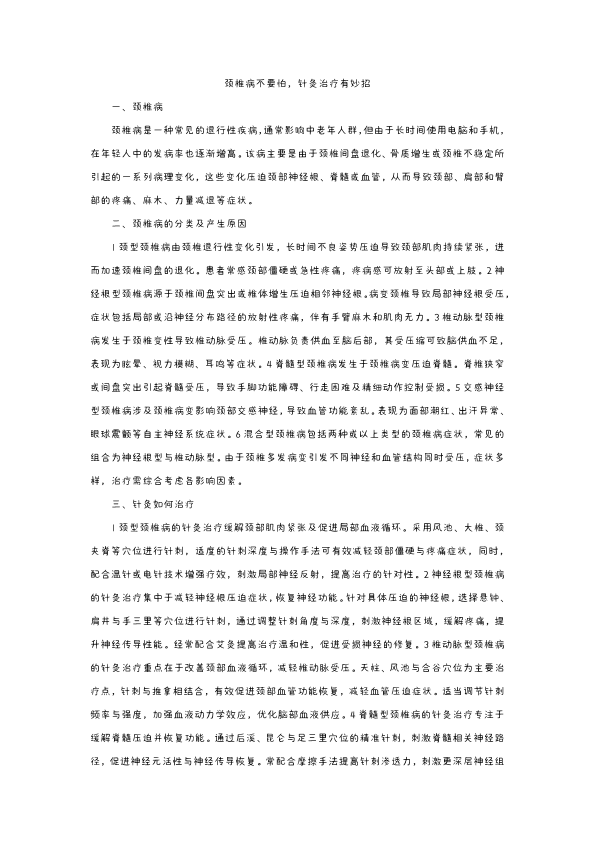 颈椎病不要怕,针灸治疗有妙招