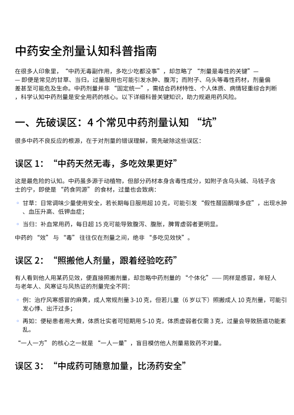 中药安全剂量科普及常见误区