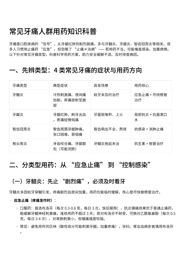 常见牙痛人群用药知识科普