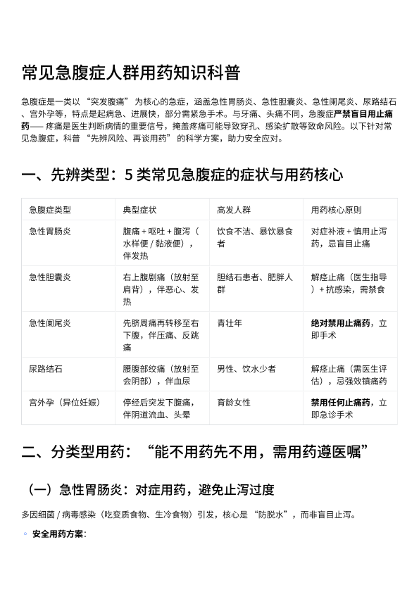 常见急腹症人群用药知识科普
