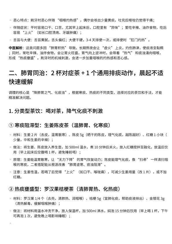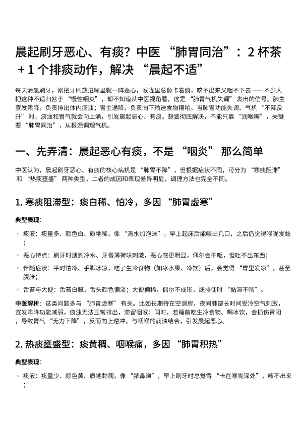 晨起刷牙恶心、有痰?中医 “肺胃同治”:2 杯茶 + 1 个排痰动作,解决 “晨起不适”