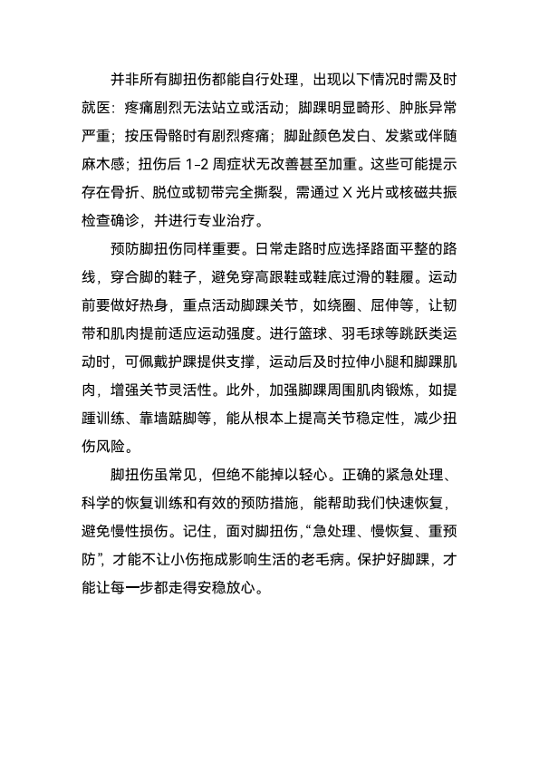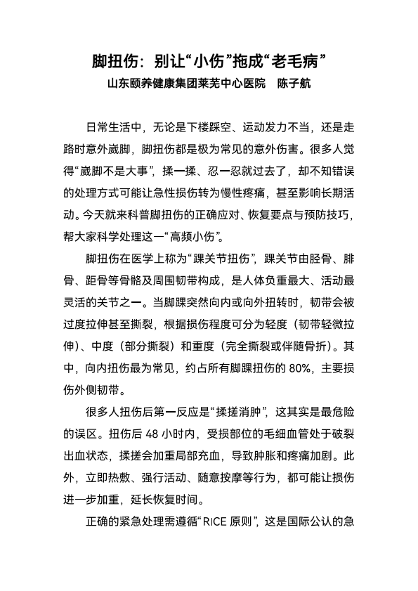 脚扭伤:别让“小伤”拖成“老毛病”