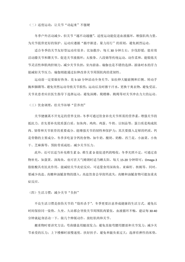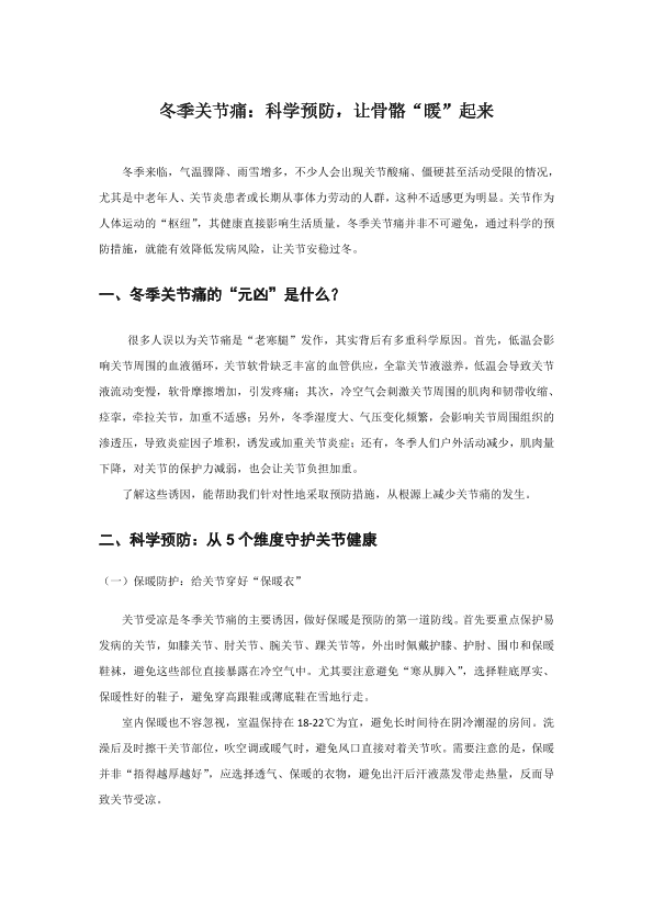 冬季关节痛的预防