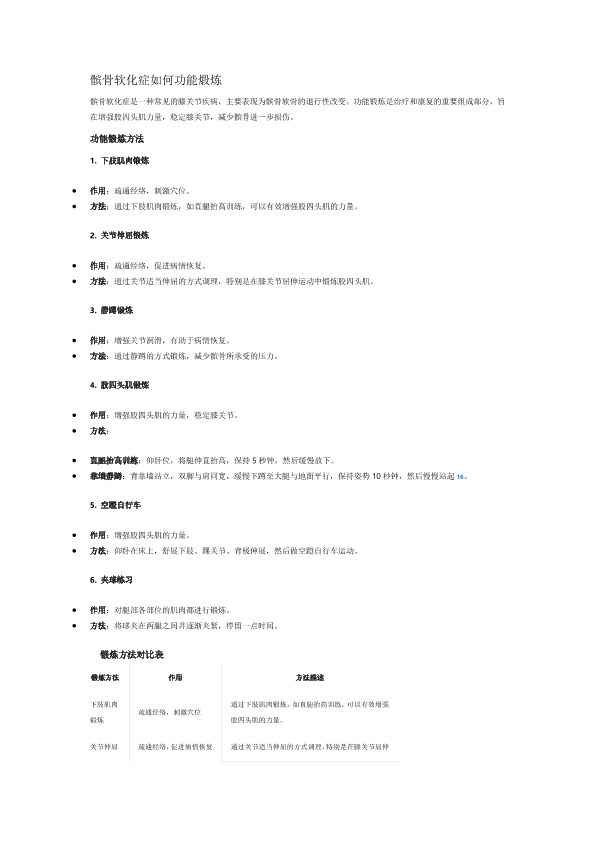 髌骨软化症如何功能煅炼
