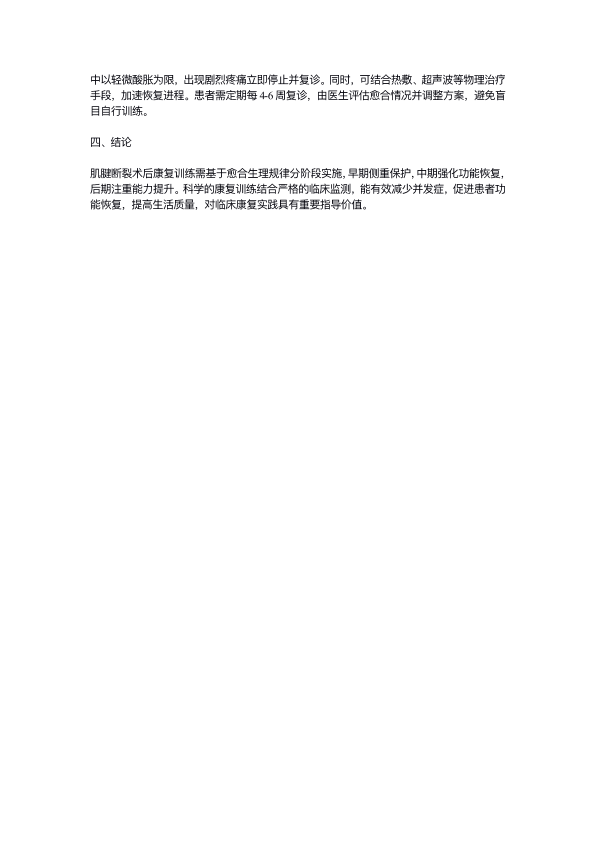 肌腱断裂术后康复训练的分期策略与临床实践