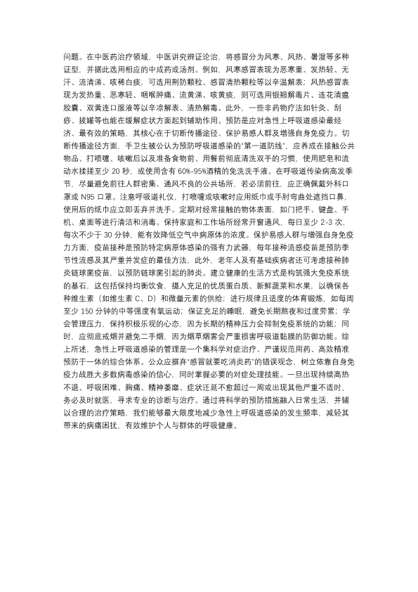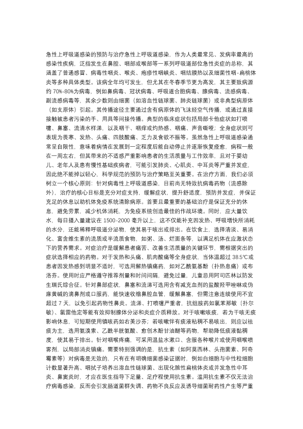 上呼吸道感染的预防及治疗