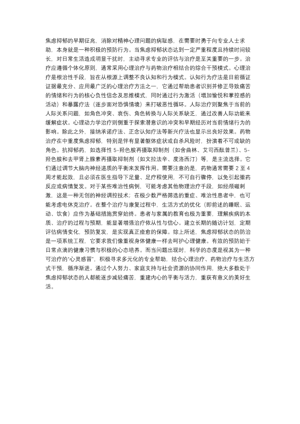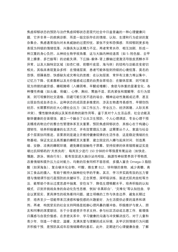 焦虑抑郁状态的治疗与预防