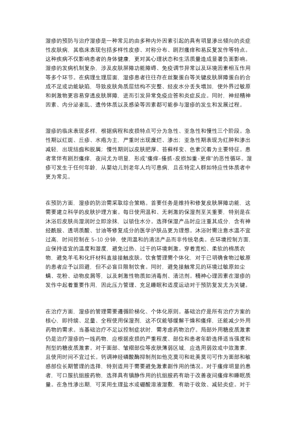湿疹的治疗与预防