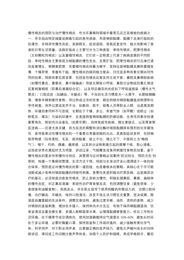 慢性咽炎的治疗与预防