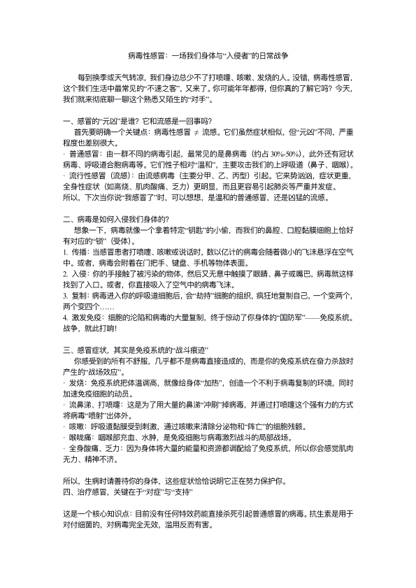 病毒性感冒:一场我们身体与“入侵者”的战斗