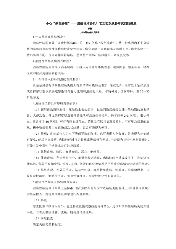 小心“绿色癌症”-溃疡性结肠炎!它正悄然威胁着我们的健康