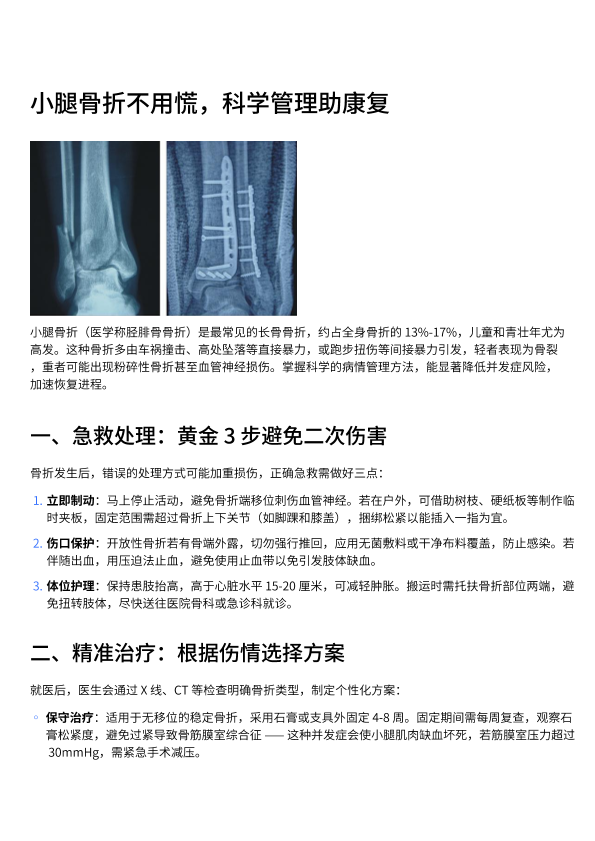 小腿骨折不用慌,科学管理助康复