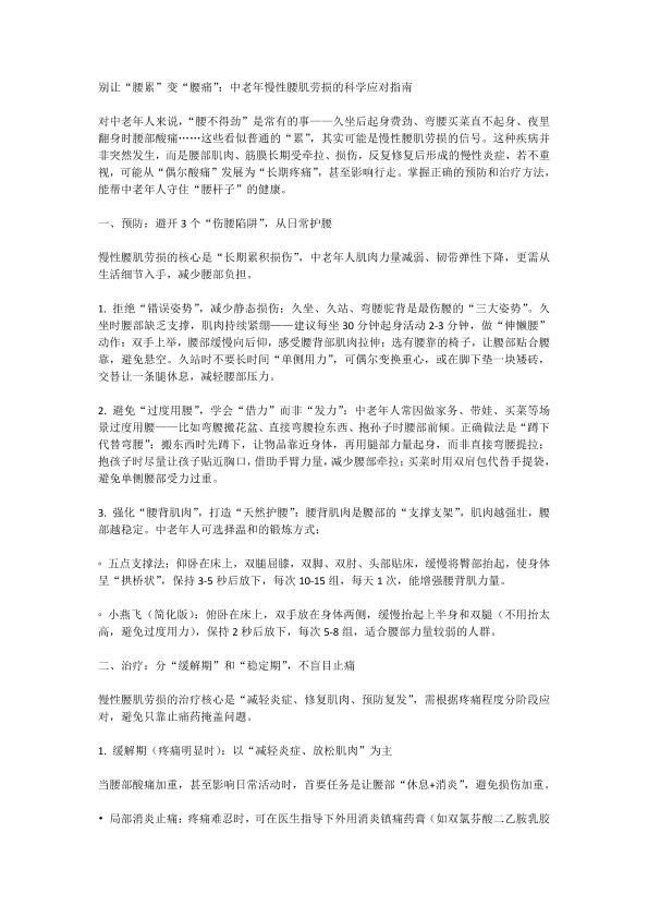 慢性腰肌劳损的预防与治疗