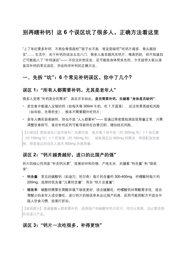 别再瞎补钙!这6个误区坑了很多人,正确的方法看这里