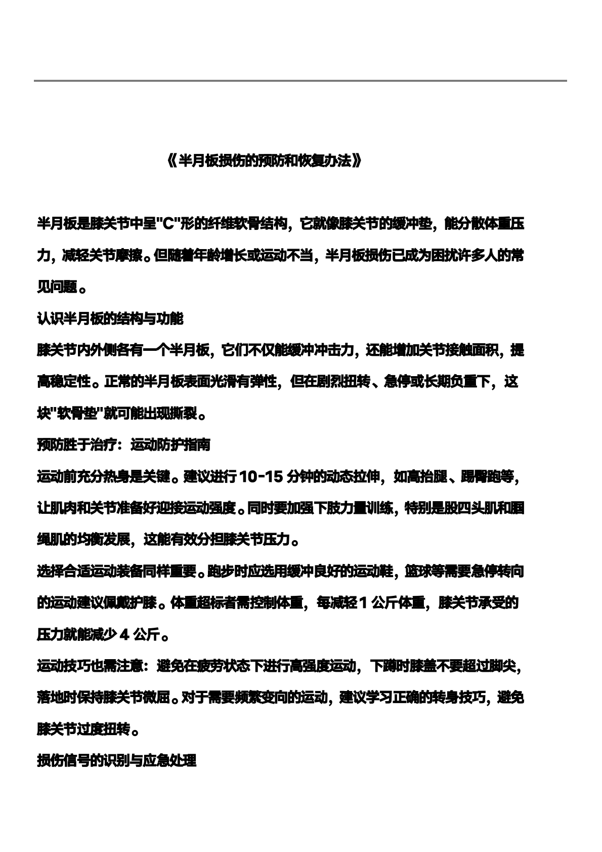 半月板损伤的预防和恢复办法
