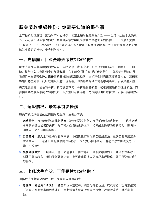 膝关节软组织挫伤:你需要知道的那些事