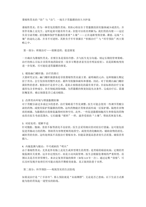 萎缩性胃炎的“防”与“治”