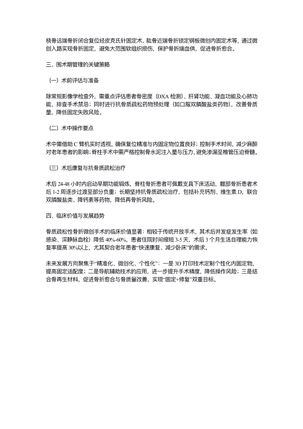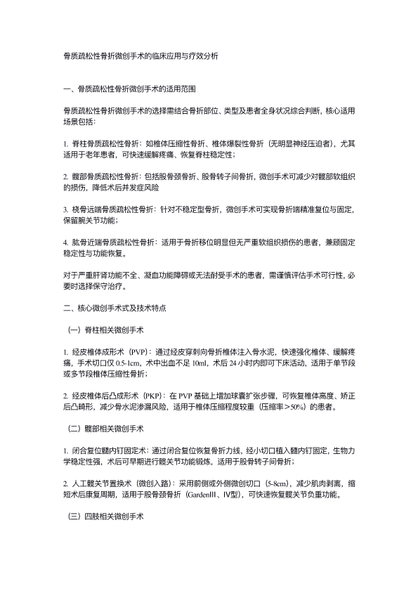 骨质疏松性骨折微创手术的临床应用与疗效分析