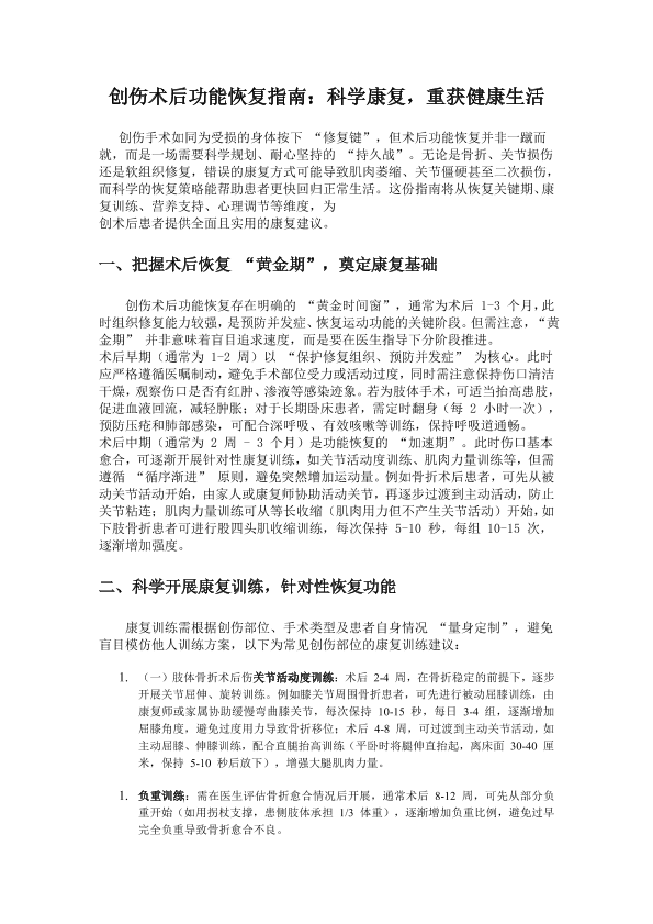 创伤术后功能恢复指南