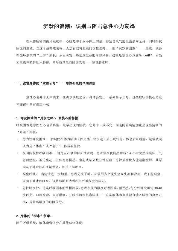 沉默的浪潮:识别于阻击急性心力衰竭