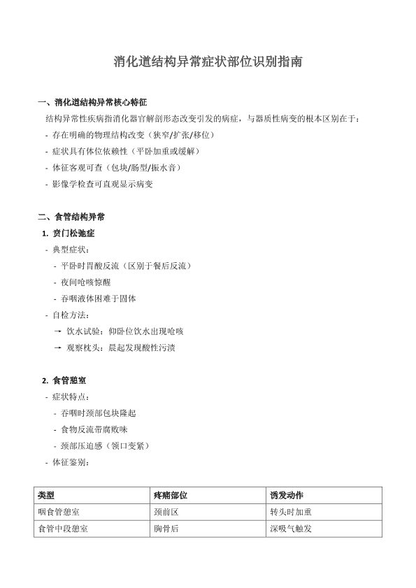 消化道结构异常症状部位识别指南