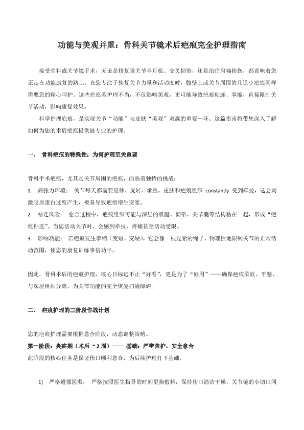功能与美观并重:骨科关节镜术后疤痕完全护理指南
