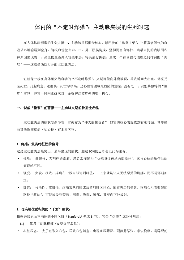 体内的“不定时炸弹”:主动脉夹层的生死时速