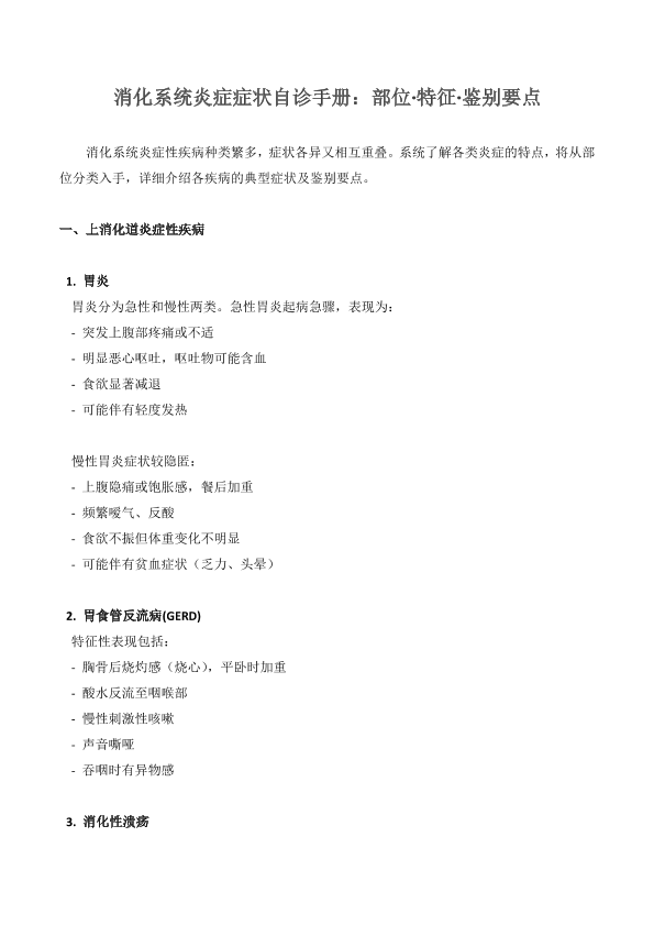 消化系统炎症症状自检手册:部位特征鉴别要点