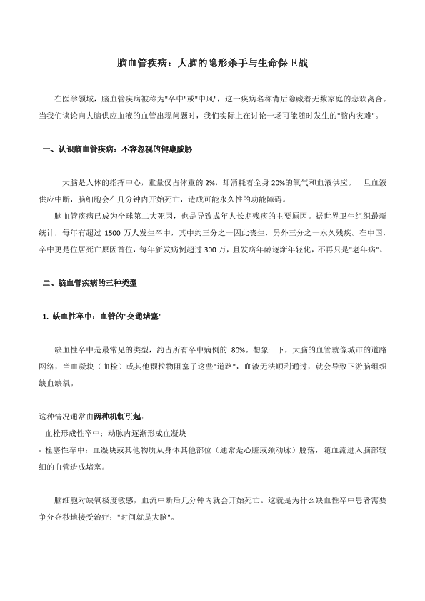 脑血管疾病:大脑的隐形杀手与生命保卫战