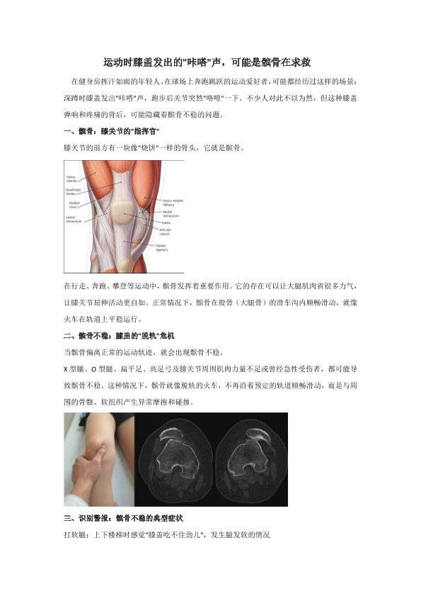 运动时膝盖发出的"咔嗒"声,可能是髌骨在求救