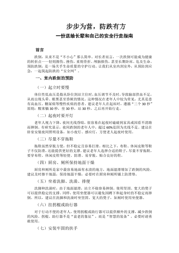 步步为营,防跌有方——一份送给长辈和自己的安全行走指南