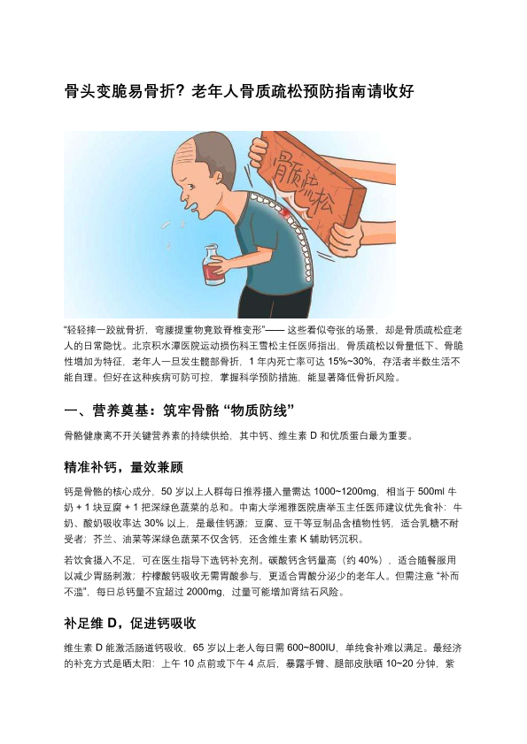 老年人骨质疏松预防指南请收好