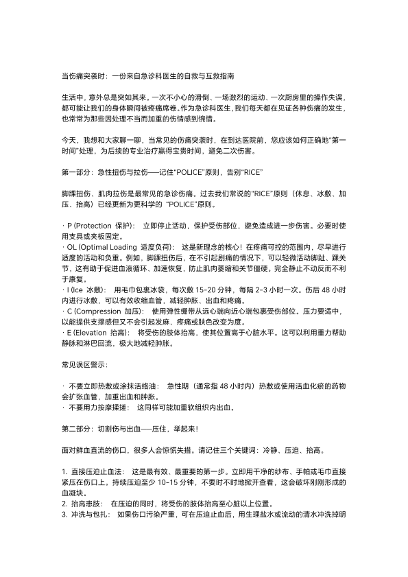 当伤痛突袭时:一份来自急诊科医生的自救与互救指