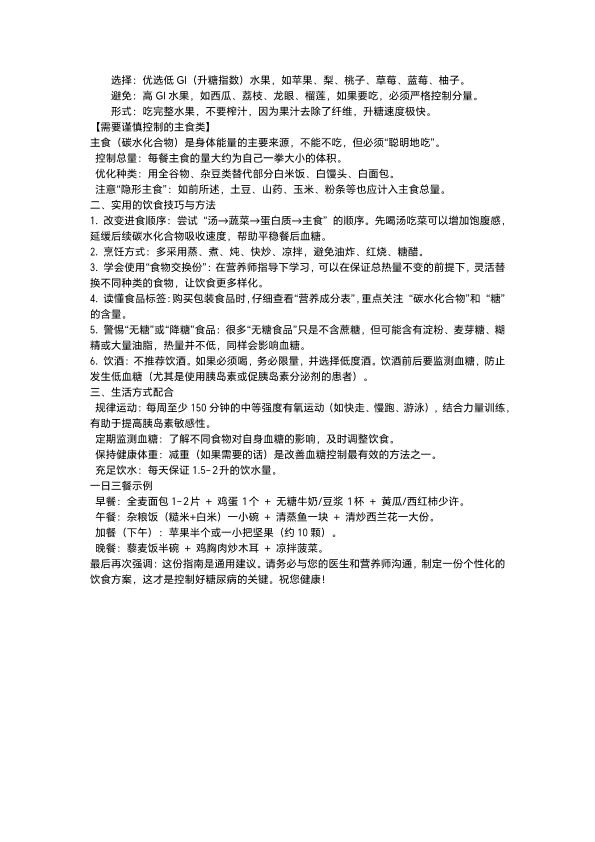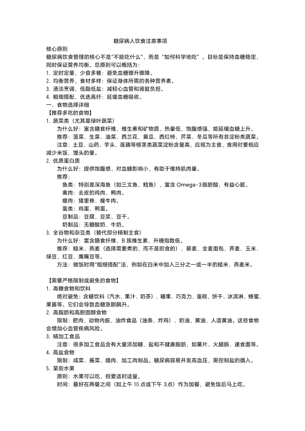 糖尿病人饮食注意事项