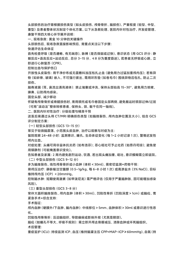 头部损伤的治疗