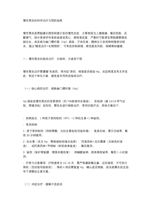 慢性胃炎的科学治疗与预防指南