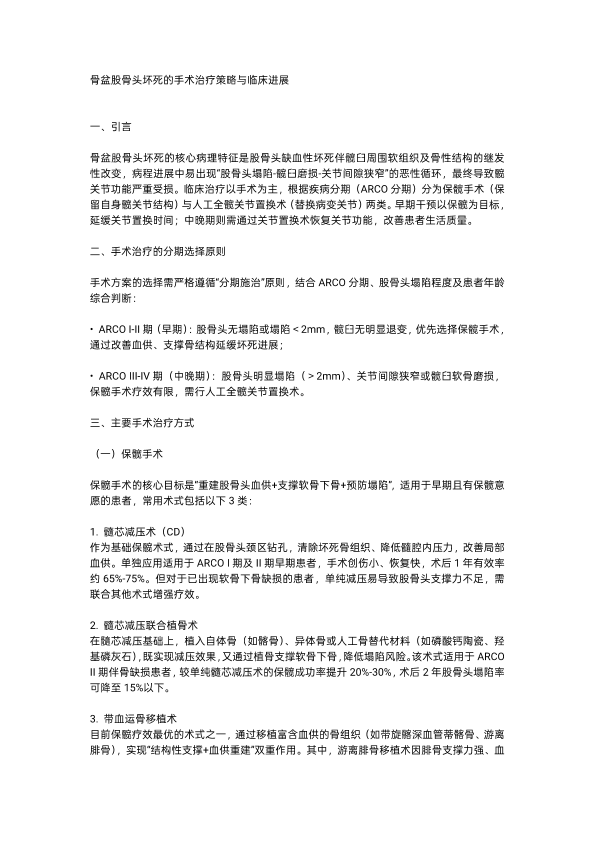 骨盆股骨头坏死的手术治疗策略与临床进展