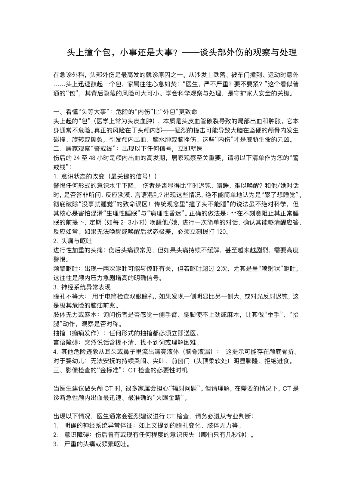 头上撞个包,小事还是大事?——谈头部外伤的观察与处理